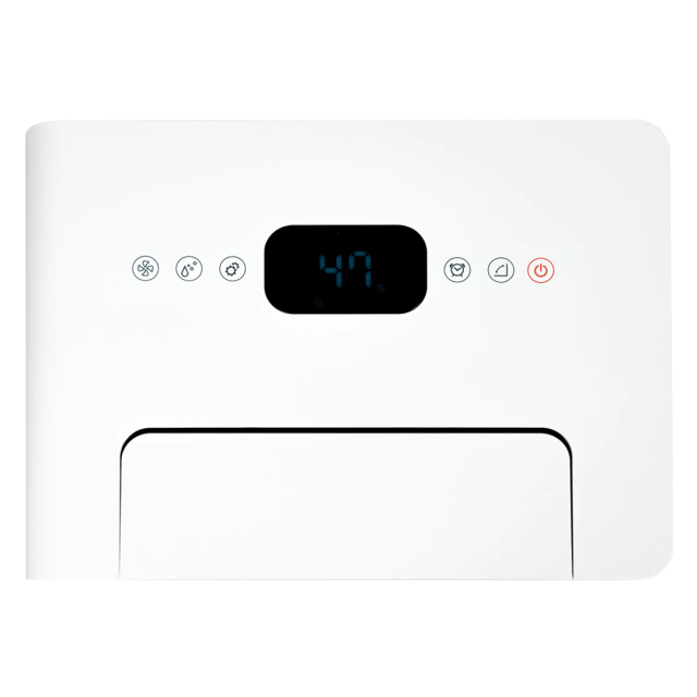 Possui painel digital que indica a umidade relativa do ambiente, timer progressivo de 12 horas para ligar e desligar,